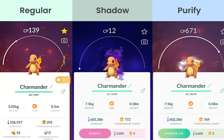 暗影寶可夢擁有 20% 的攻擊加成,但防禦力降低 20%。當你淨化一隻暗影寶可夢時,它的每一項 IV 數值(攻擊、防禦、體力)都會增加 +2。這意味著一隻 13/13/13 的暗影寶可夢,淨化後會變成一隻 100% IV(15/15/15)的淨化寶可夢。